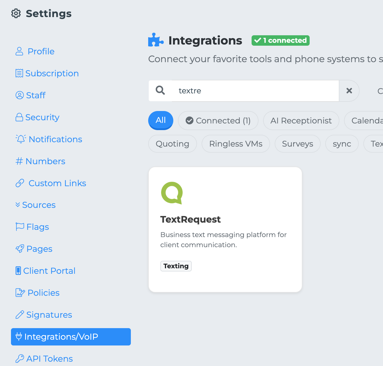 In MedicarePRO, go to Settings → Integrations → TextRequest