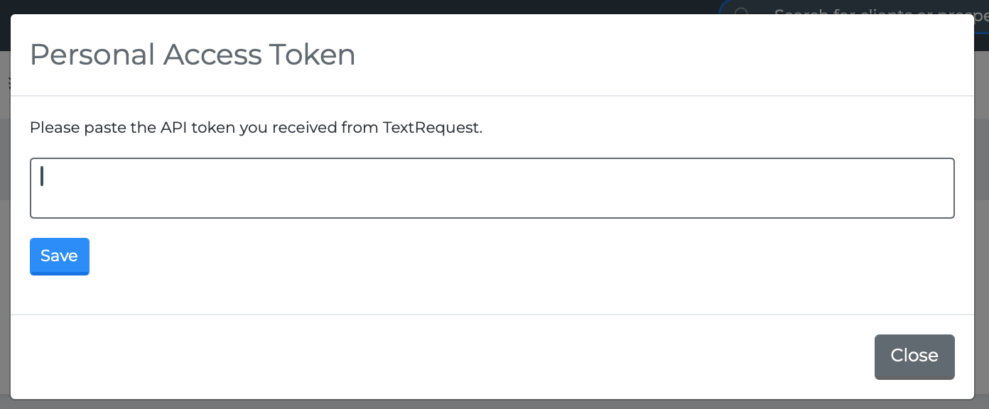 Paste the API token you generated in TextRequest