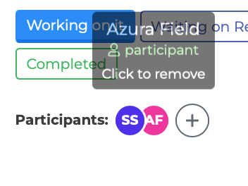 Assignee — The person responsible for completing the task. Shown with a check-user icon. The assignee has full edit access. To change the assignee, use the "Assigned to" dropdown in the task editor — you cannot remove them directly from the participants list.