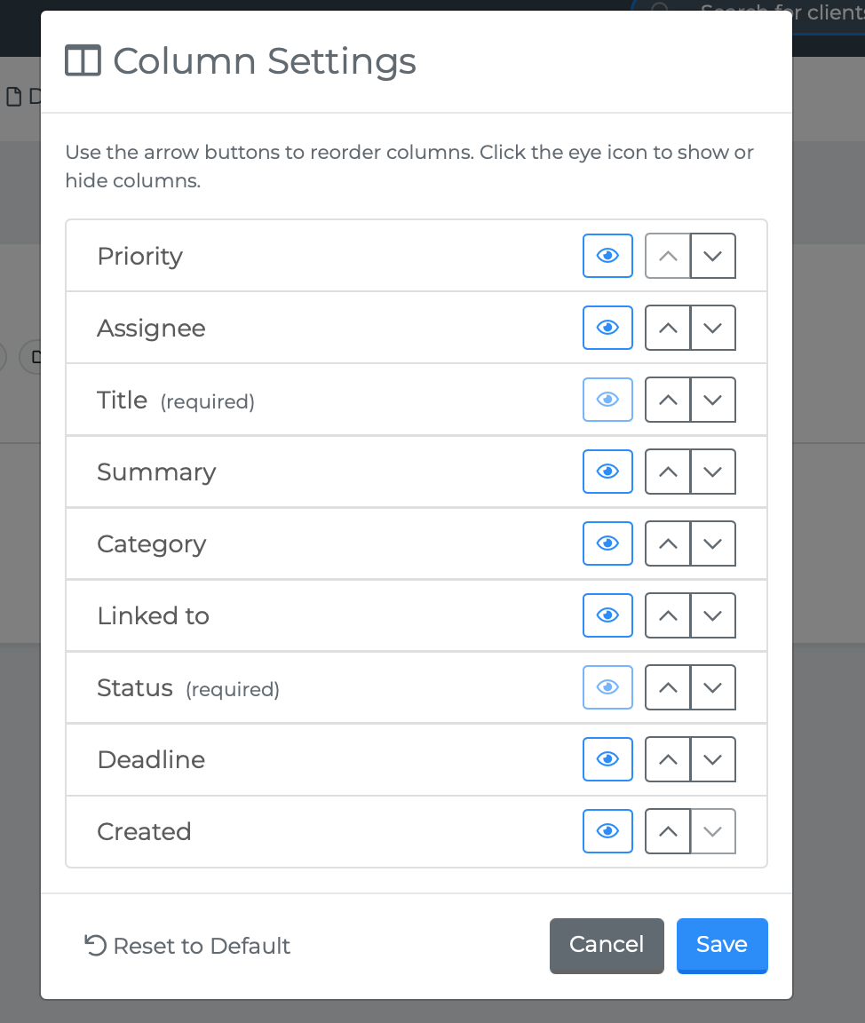 Your column visibility preferences are saved automatically and persist between sessions. The next time you visit the Tasks page, your columns will be configured the same way you left them.