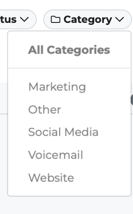 The list includes both default categories and any custom categories your team has created.