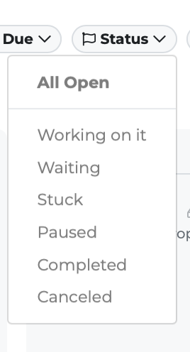 Canceled — Dark dot. Selecting this also switches to closed tasks.