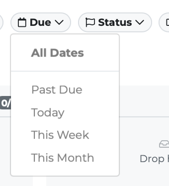 Past Due — Shows only tasks where the deadline has passed. Indicated by a red dot.