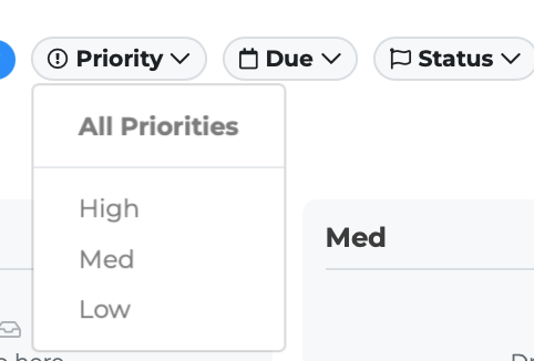 Low — Shows only low-priority tasks. Indicated by a blue dot.