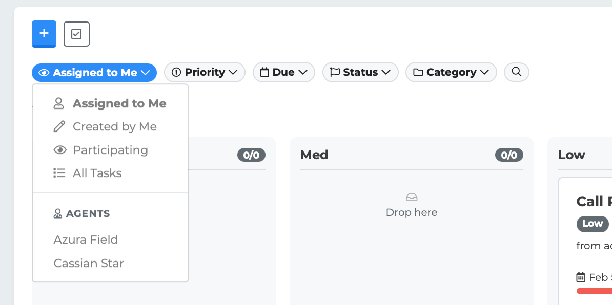 Assigned to Me — Shows only tasks where you are the assignee. This is the default view.