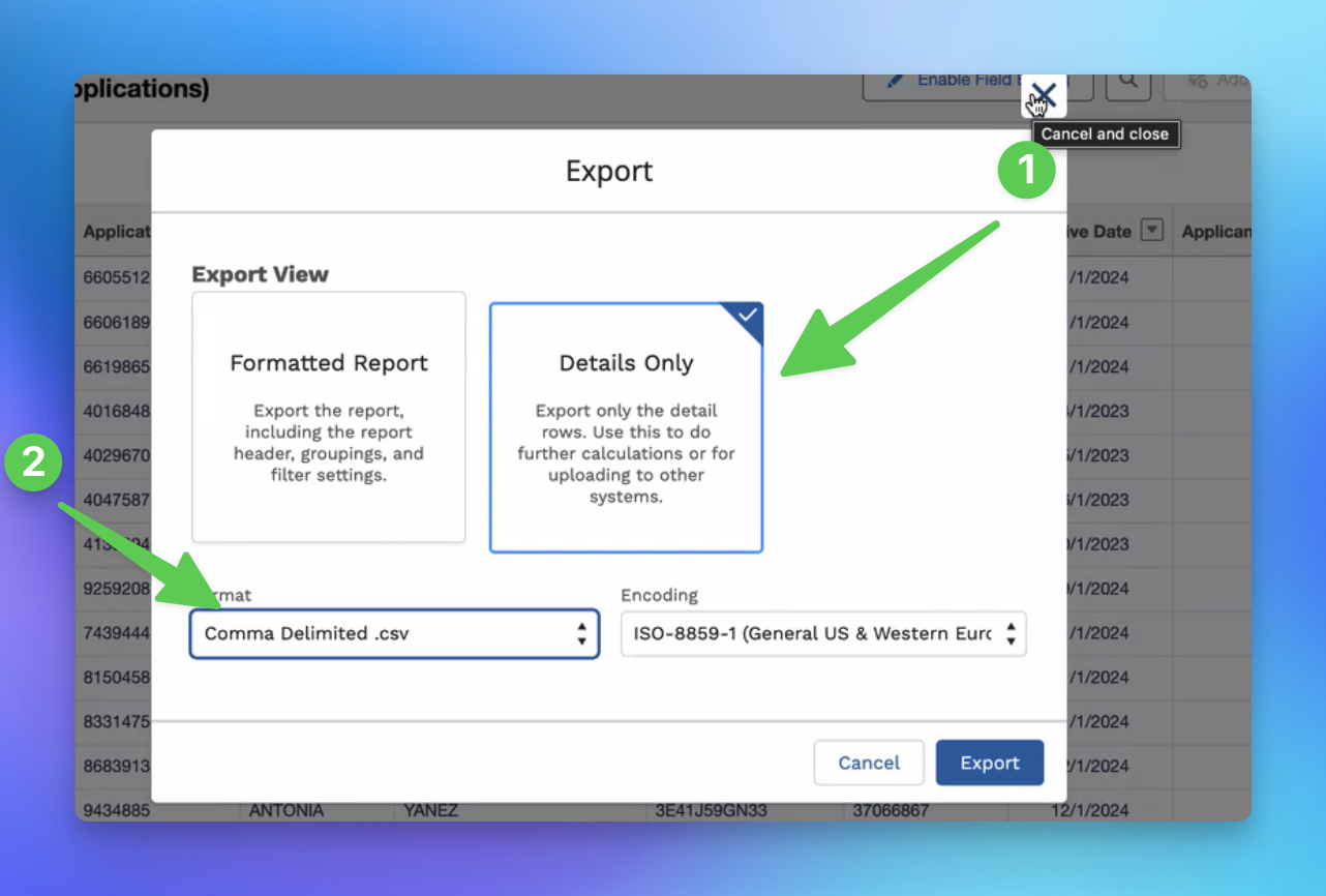 IMPORTANT: Click "Details Only" and "Comma Delimited"