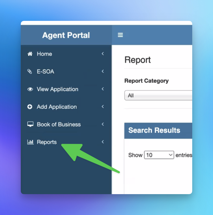 Click Reports on the left (NOT Book of Business)